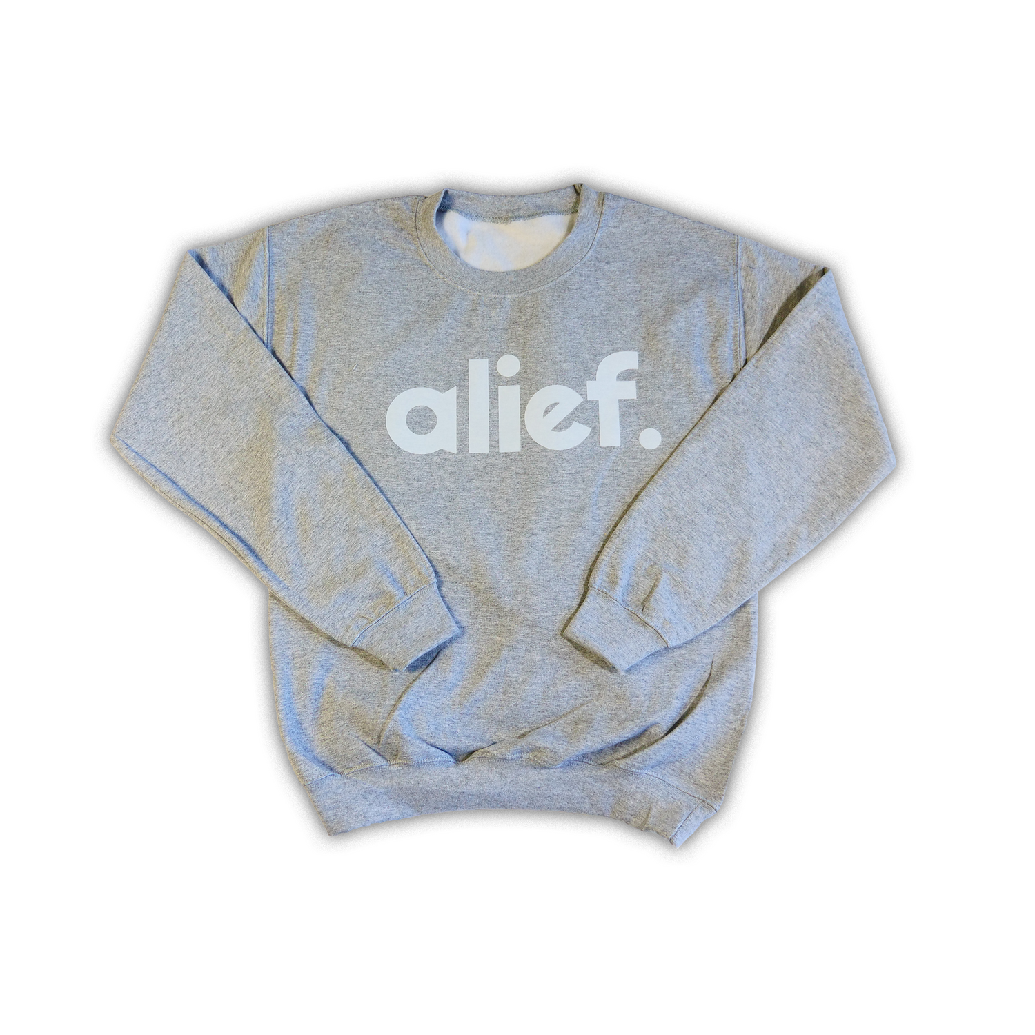 Enjoy the comfortable long-sleeve sweater with a bold alief print across the front chest.
