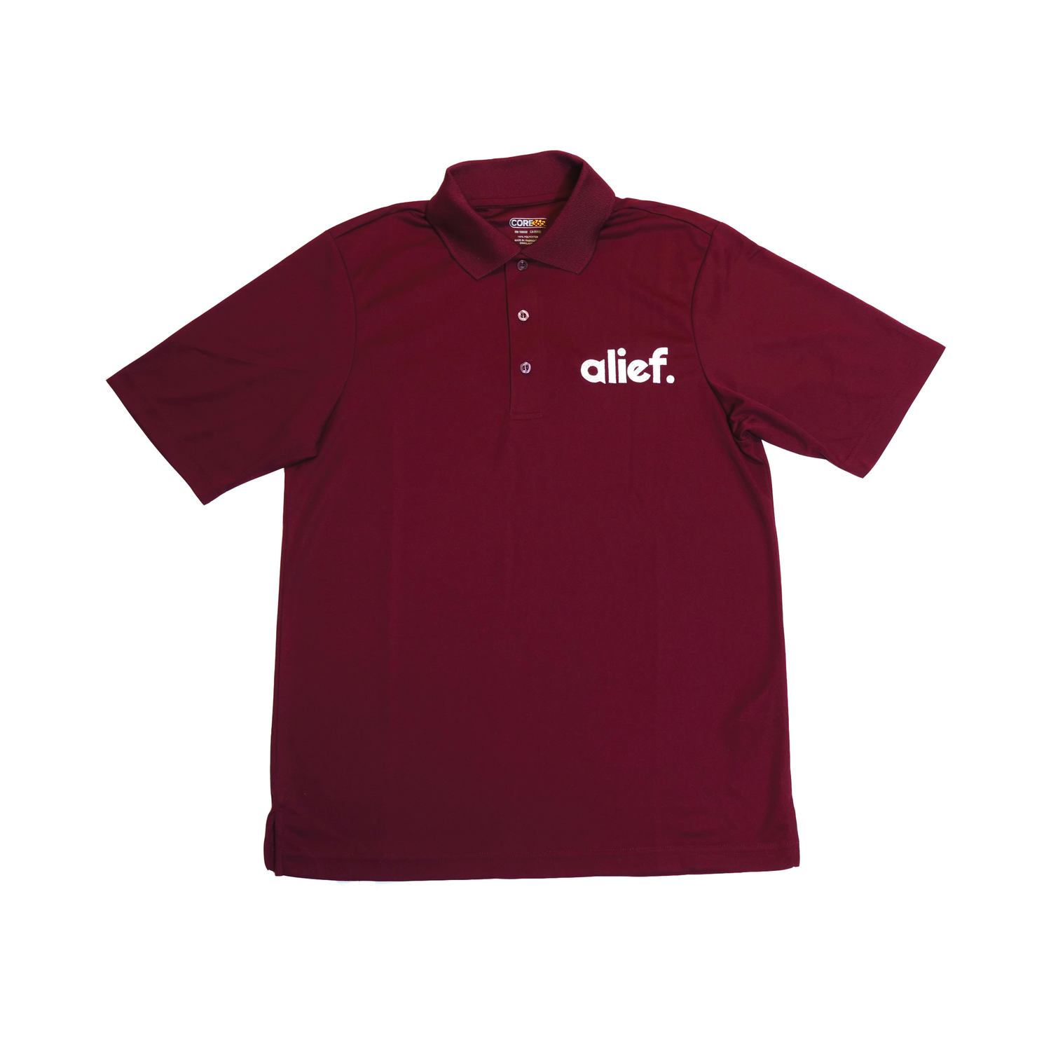 Embroidered Bold Alief Collar T-Shirts - Maroon/ White