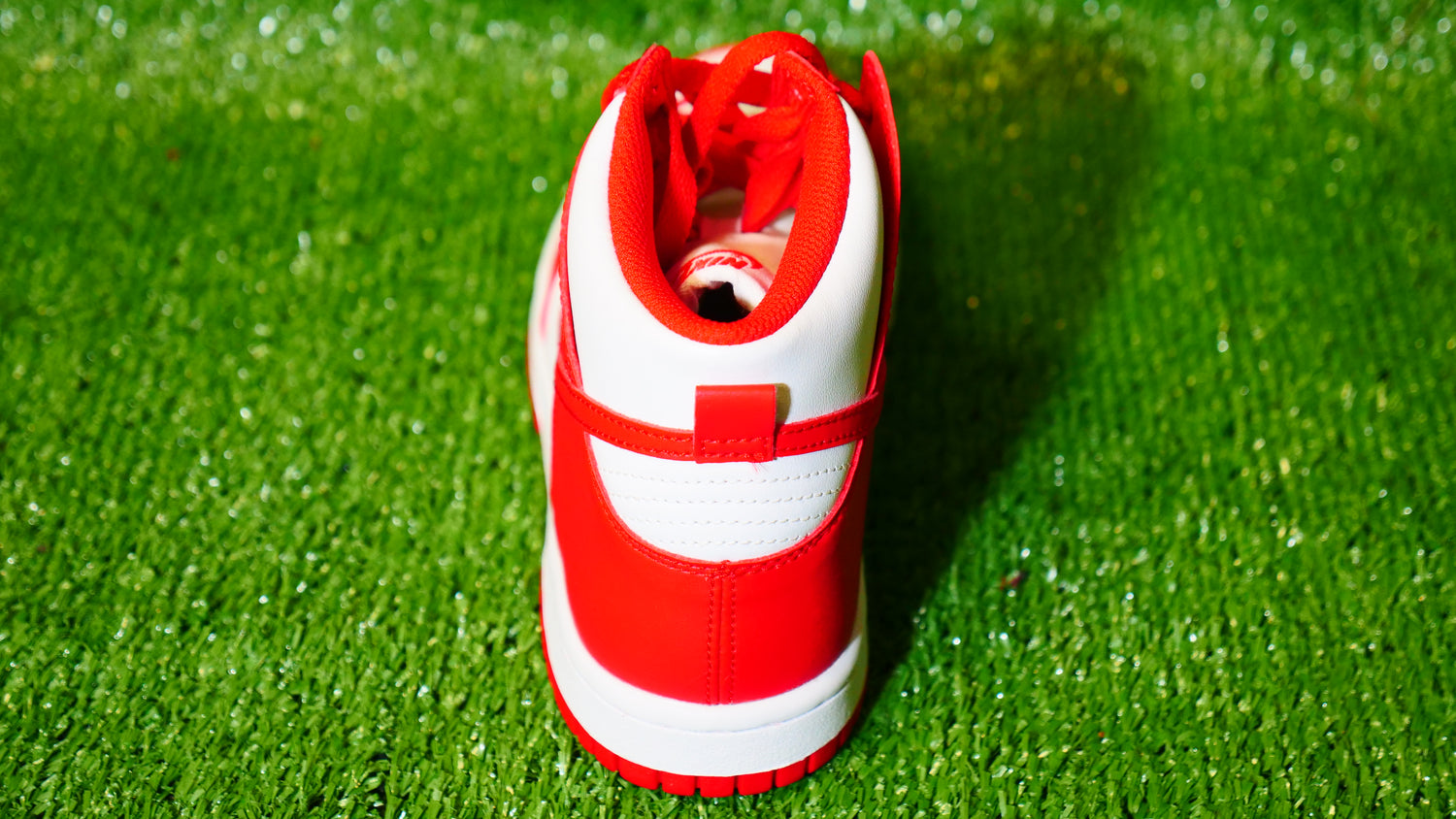 Similar to classic Dunks from the mid-1980's, the Nike Dunk High Championship White Red carries a more traditional look with a two-tone color blocked leather upper. At the base, a matching Air sole completes the design.