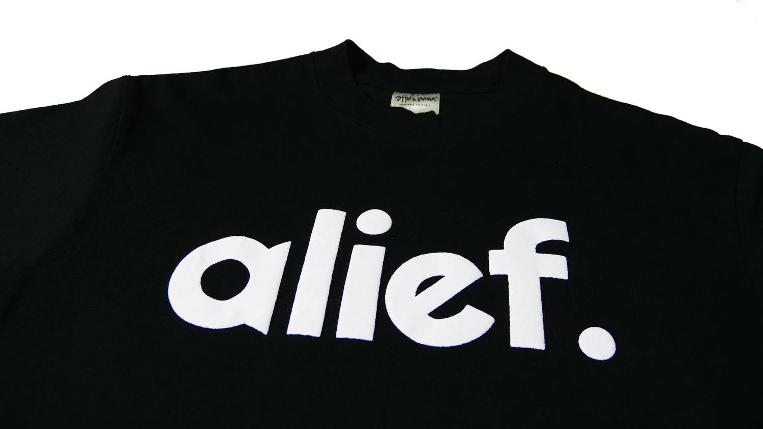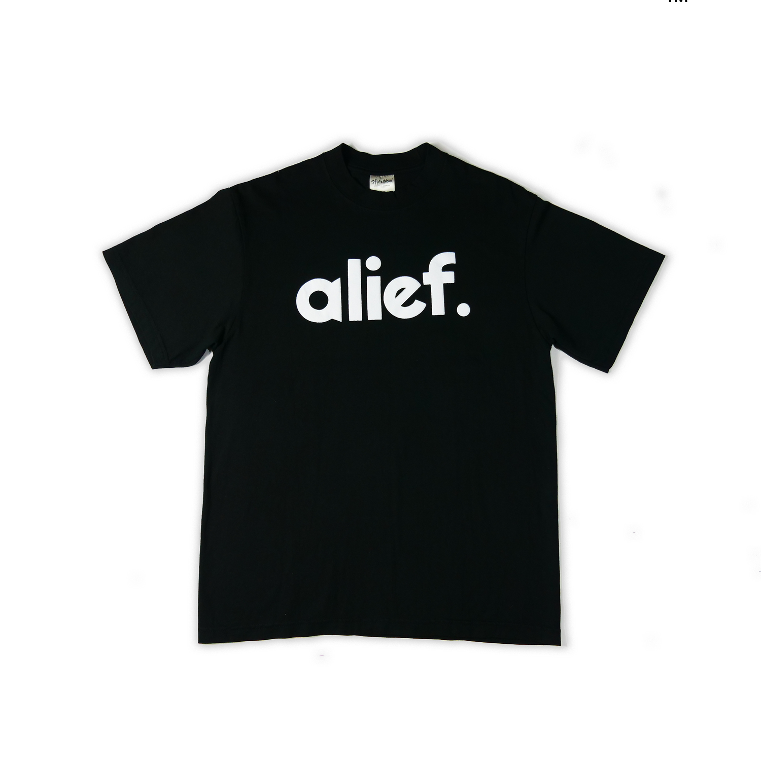 Standout with the rare puff ink classic bold alief logo on a classic black mid weight tee. Available for a limited time.