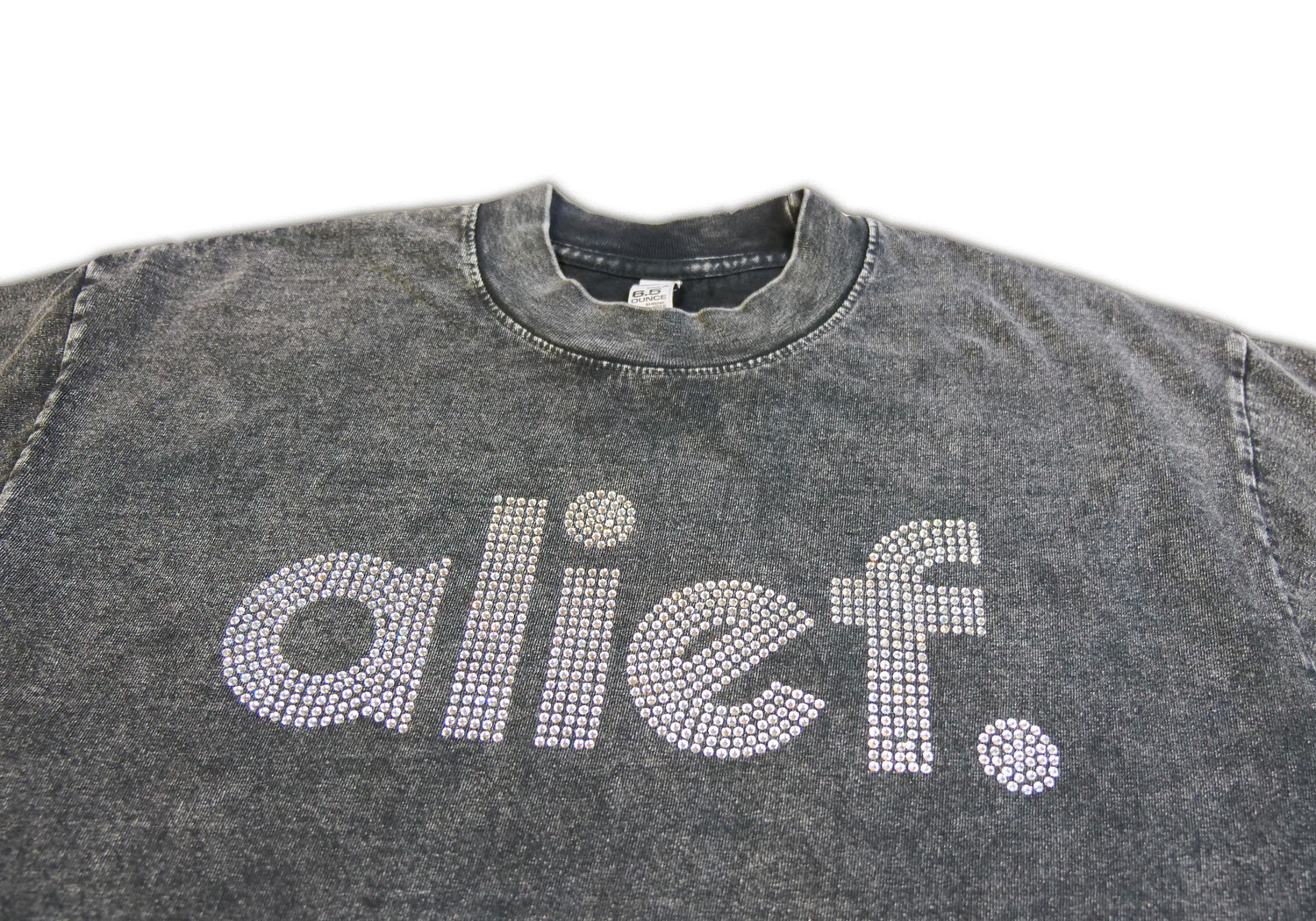 Alief Rhinestone Tee - Vintage Smoke Gray